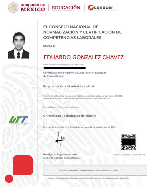Es una certificación oficial que respalda tu experiencia ante la industria. Expedida por la Secretaria de Educacion Publica SEP a travez del CONSEJO NACIONAL DE NORMALIZACION Y CERTIFICACION (CONOCER), tambien obtienes una DC3 constancia de habilidades de la SECRETARIA DEL TRABAJO STPS, estos documentos son validos y aceptados en cualquier industria.